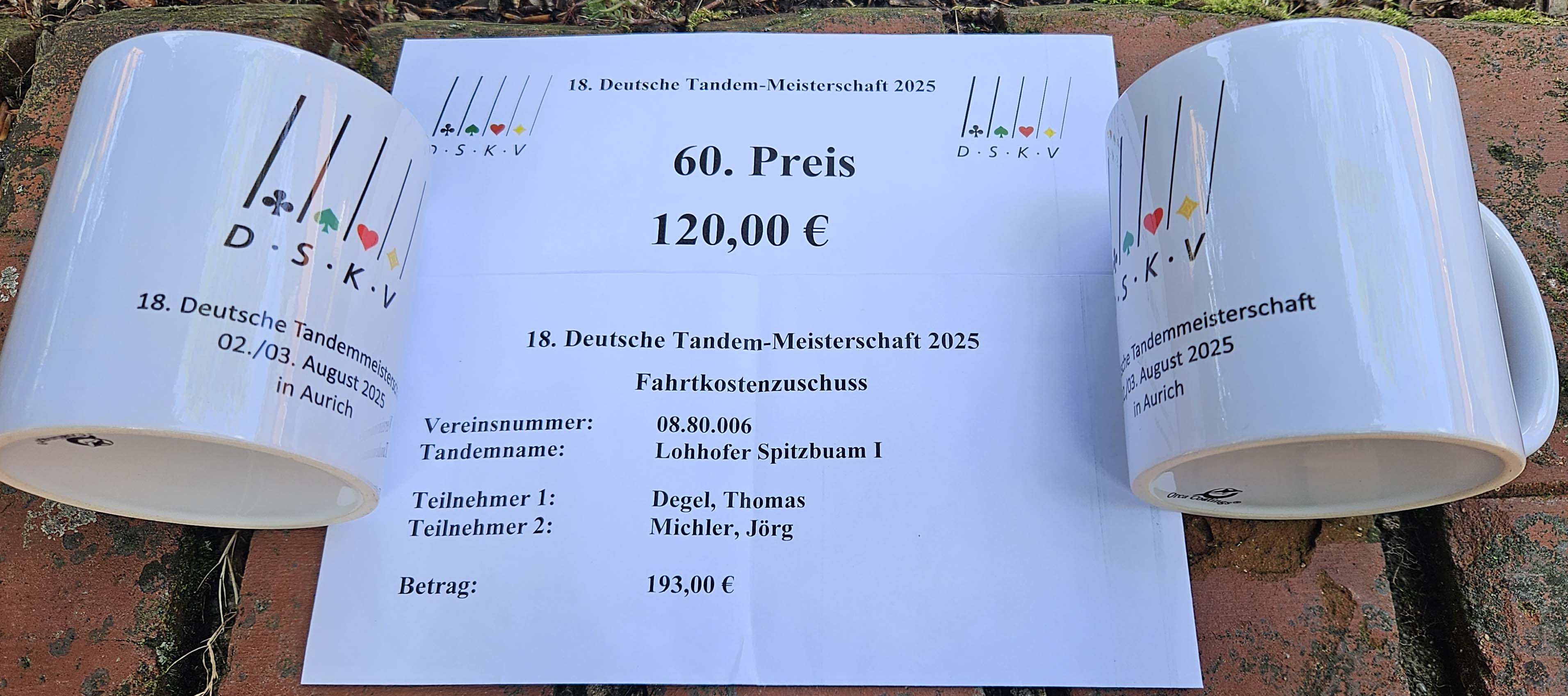 Bei der Deutschen Tandemmeisterschaft haben Jörg Michler und Thomas Degel den 60.Platz (von 241) erreicht